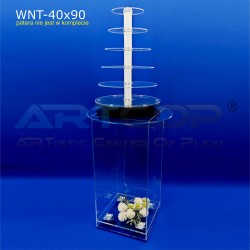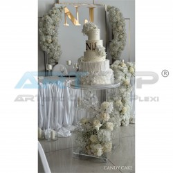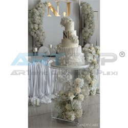 An exceptional exclusive pedestal for a wedding cake. The pedestal is made of thick plexiglass with mounted castors (wheels).