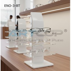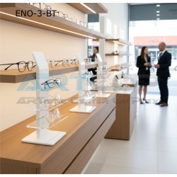 This stand is designed as a minimalist and modern system for displaying eyewear, ideal for optical stores, boutiques or on shop counters.