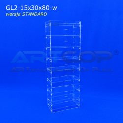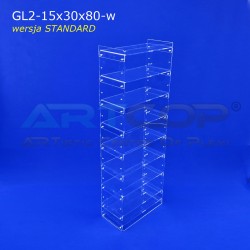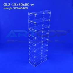 A practical exhibition and retail display case made of 3 mm plexiglass. Perfect for presenting food and confectionery products, cosmetics, jewelry, or leather goods.