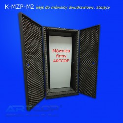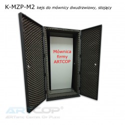 a case (transport box) designed for transporting and storing plexiglass lecterns made by ARTCOP. The case is made of 10mm MDF and is screwed together with screws. It has additional rubber wheels with a diameter of 35mm, which facilitate transport on even surfaces. The lid is hinged and closed with case locks. The case is painted with black acrylic paint and lined with 4cm corrugated foam inside. It is important to note that ARTCOP's plexiglass products are covered with protective film in clear, blue, white, or green color, which needs to be removed before use. The cleaning instructions for the lectern can be downloaded from the "DOWNLOAD" tab.