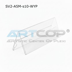 Made of Clear Plexiglass: The stand is made of high-quality, transparent plexiglass (acrylic glass), ensuring crystal-clear transparency and a modern design. It is lighter and more durable than traditional glass. "A-Frame" (Type A) Construction: The special, stable shape with two inclined walls allows for double-sided display of information. Guests can see the identifier regardless of which side they are sitting on. Easy Content Replacement: The card, business card, or label is inserted from the bottom or side, allowing for quick and effortless information exchange before every event. Stability: The wide base provides high stability on the tabletop, minimizing the risk of tipping over. Universal Application: Excellent for conferences, training sessions, banquets, corporate events, and for marking prices or product names in stores and museums.