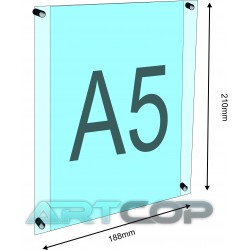 A6 Vertical Acrylic Holder / Pocket for standoff mounting, 2mm thick (standoffs not included). Mounting standoffs can be purchased in our other auctions. This holder is compatible with KDC-12x25 series A, T, C standoffs.