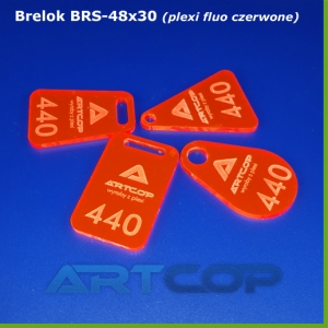 Brelok do szatni, recepcji lub hotelu. Mogą być także wykorzystane jako reklamówki = gadżety lub upominki. Brelok wykonany jest z jaskrawo-czerwonej plexi (fluorescencyjnej), która jest widoczna z daleka, przez co, jest łatwy do znalezienia gdyby się zgubił lub zawieruszył.