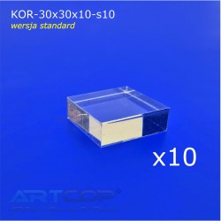 Transparent plexiglass cubes measuring 30 × 30 × 10 mm are versatile and elegant display elements ideal for showcasing jewelry and small items. Made from high-quality, crystal-clear plexiglass, they provide excellent visibility of the presented products, while the sharp, precisely cut edges give them a modern and professional look.