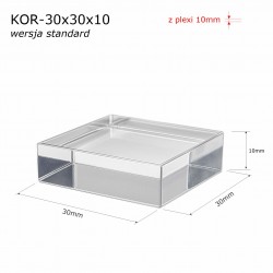 Transparent plexiglass cubes measuring 30 × 30 × 10 mm are versatile and elegant display elements ideal for showcasing jewelry and small items. Made from high-quality, crystal-clear plexiglass, they provide excellent visibility of the presented products, while the sharp, precisely cut edges give them a modern and professional look.