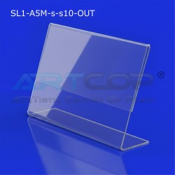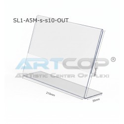 The stand is designed to hold a single leaflet in A5 landscape format. It is stable and durable, made of 1.5 mm thick plexiglass. It is commonly used in travel agencies, banks, customer service offices, sales points, furniture stores, electronics stores, and many other locations. It is also used as a frame for pictures and photographs.