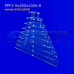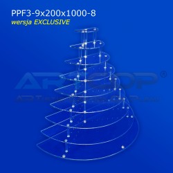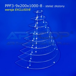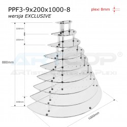 This model is designed to be placed on a table against a wall. Once assembled, the rear part of the frame rests directly against the wall. This provides significantly better access to mono portions (individual desserts) compared to classic round or square trays.