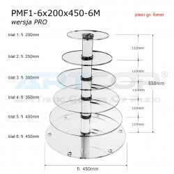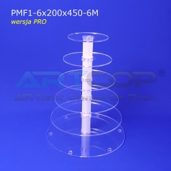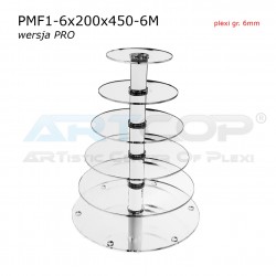 This tiered dessert stand is made from premium, food-grade certified plexiglass with a single central pillar. It features 6 levels and stands 55 cm tall, offering a stylish and functional way to present baked goods or other small items.