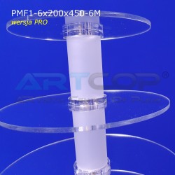 The support tubes are made from frosted plexiglass with a diameter of 50 mm. The trays are made of 6 mm thick transparent plexiglass, ensuring both stability and elegance.