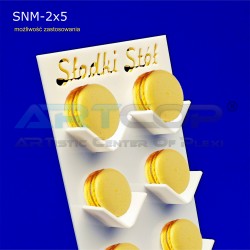 The stand has ten slots for macarons. Made of plexiglass certified for contact with food.