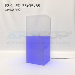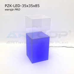 Pedestal 35 × 35 × 50 cm + transparent cover 35 × 35 × 35 cm (self-centering = aligns with the pedestal surfaces, does not slide sideways) + RGB LED lighting (full color)