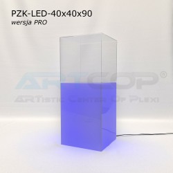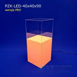 Pedestal 40 × 40 × 50 cm + transparent cover 40 × 40 × 40 cm (self-centering = aligns with the pedestal surfaces, does not slide sideways) + RGB LED lighting (full color)