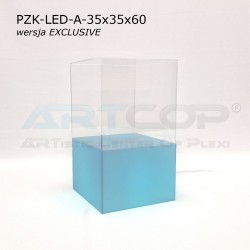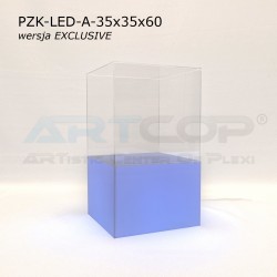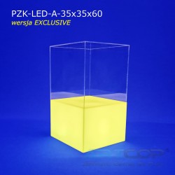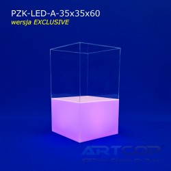 The column has been designed so that when the shade is placed, its edges align perfectly with the base. The structure is made of 5 mm thick plexiglass, complemented by a removable, transparent acrylic glass cover of the same thickness. This ensures the pedestal not only looks elegant but also guarantees the safe and aesthetic display of items. The LED backlighting further enhances the presentation of items showcased in the display. The RGB LEDs installed inside allow for the setting of 17 different colors, catering to the visual needs of every exhibitor. The controller allows programming of various color sequences, such as changing light colors over time or pulsing flickering effects.