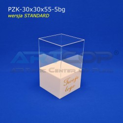 Pedestal 30x30x25 cm + transparent cover 30x30x30 cm + logo print on 1 side
