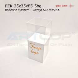 Pedestal 35×35×50 cm + clear cover 35×35×35 cm + logo print on one side