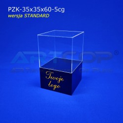 35x35x25 cm + transparent cover 35x35x35 cm + logo print on 1 side