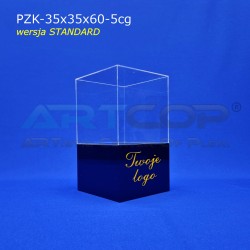Pedestal with cover, STANDARD version plexiglass pedestal with customer logo UV print
