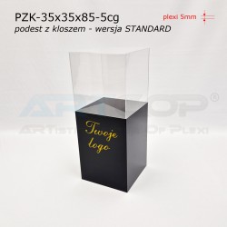 Pedestal 35×35×50 cm + clear cover 35×35×35 cm + logo print on one side