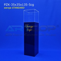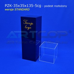 Pedestal 35×35×100 cm + clear cover 35×35×35 cm + logo print on one side