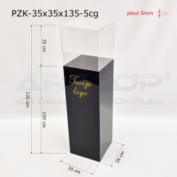 Pedestal 35×35×100 cm + clear cover 35×35×35 cm + full-color logo print on one side