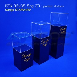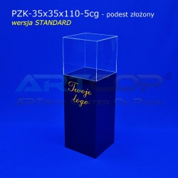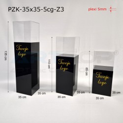 Pedestal 35×35×50 cm + clear cover 35×35×35 cm + full-color logo print on one side