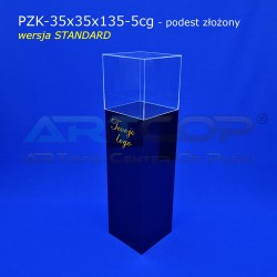 Pedestal 35×35×25 cm + clear cover 35×35×35 cm + full-color UV logo print on one side