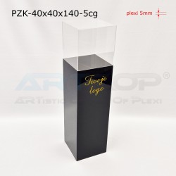 Pedestal with cover, plexiglass stand in STANDARD version with UV logo print