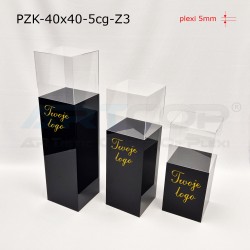 Pedestals with covers – set of 3 pieces with logo print, made of black plexiglass 40x40, STANDARD version with 5 mm plexiglass