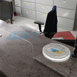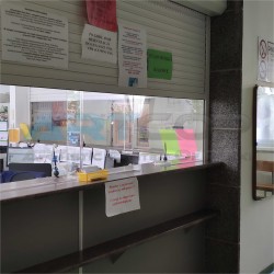 Execution and assembly of an anti-COVID shield (or screen/guard) for the MSWiA clinic (or medical center). The shield had to meet many rigorous conditions. Additionally, it had to be tall and stable so that the anti-burglary curtain (or security shutter) would not interfere with it.
