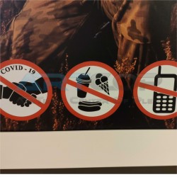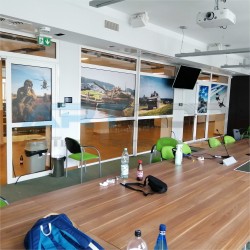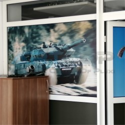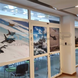 Large format print on film, double-sided covering (or sticking/wrapping) of windows and a modular board. Everything made at the ARTCOP company