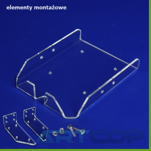 The stand is made from Plexiglass (Acrylic) with varied thicknesses for stability and visual appeal: