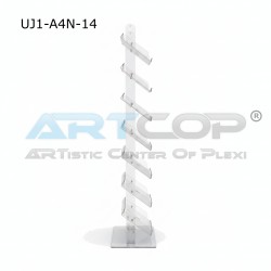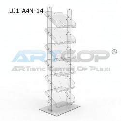 Format: 14 x A4 Vertical Height: 180 cm Overall Dimensions: 38 x 180 x 38 [cm] Material: High-quality plexiglass (thickness: 10/8 mm base/sides; 4 mm shelves/top)