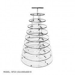 Cake stand (or Tiered serving dish) from plexi 10-story (or 10-tiered), with the possibility of reduction of tops (or tiers)