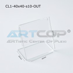 Technical specification: Material: Colorless plexi (acrylic) with a thickness of approx. 1.5 - 2 mm. Type: Standing, one-sided (letter L). Color: Transparent (clear). Quantity in set: 10 pieces. Edges: Smooth, laser-cut (safe in usage).