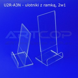 Ulotnik z ramką to połączenie ulotnika prostego ze stojakiem typu L, czyli 2w1. Kombinacja taka daje dwufunkcyjność produktu. Służy głównie jako podajnik ulotek, ale w przypadku wyczerpania się ich w podajniku, informacja o usłudze lub produkcie nadal jest dostępna dzięki ostatniej ulotce umieszczonej w tylniej ściance. Ulotkownik spełnia wtedy funkcję stojaka informacyjnego.