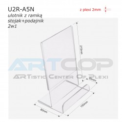 Technical data: material: colorless 2 mm plexiglass, glossy edge flyer holder sizes: WxHxD = 150 x 215 x 80 [mm], space for insert: 35 [mm], insert and sheet format A5 vertical.