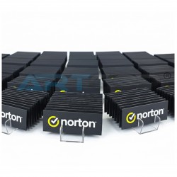 Druk Cyfrowy UV (Full Color): Do produkcji używamy zaawansowanej technologii druku UV, która zapewnia idealne odwzorowanie kolorów CMYK i Pantone oraz wyjątkową trwałość nadruku. Gwarantujemy, że kolor firmowy (np. żółty w logo Norton) jest jednolity i powtarzalny na każdej, nawet dziesięciotysięcznej tabliczce.