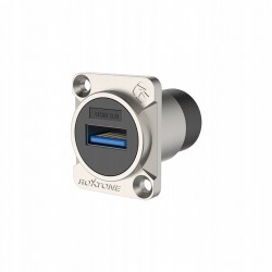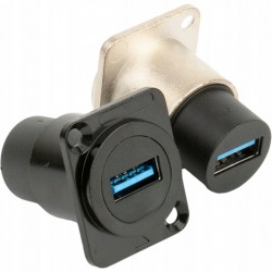 Gniazdo USB przelotowe z możliwością podłączenia przez kabel USB do PowerBank. Tak można w prosty sposób oświetlić pulpit mównicy. Bardzo przydatne przy prelekcjach wieczornych lub w miejscach objętych półmrokiem. Kolor lampki - czarny. Kolor gniazda do wyboru, czarne lub srebrne.