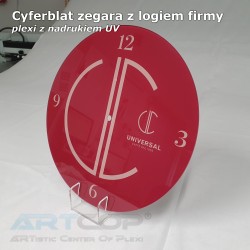 Cyferblat (zegar) z logotypem klienta z nadrukiem grafiki technologią UV - Universal