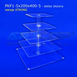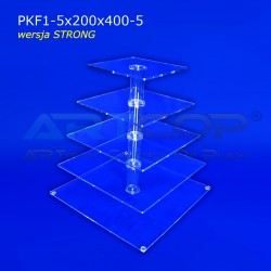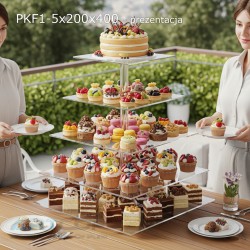 Model powstał na prośbę CUKIERNIKÓW, którzy poszukiwali stojaka wystawienniczego na muffiny, ciasteczka i babeczki. Nasz projektant dokonał stosownej modernizacji pierwotnego modelu modułowego. Stojak po złożeniu może być eksploatowany dynamicznie można go przenosić z miejsca na miejsce ujmując go za dowolny podest, co nie jest możliwe w Fontannie modułowej (składanej).