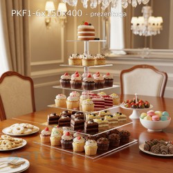 Model powstał na prośbę CUKIERNIKÓW, którzy poszukiwali stojaka wystawienniczego na muffiny, ciasteczka i babeczki. Nasz projektant dokonał stosownej modernizacji pierwotnego modelu modułowego. Stojak po złożeniu może być eksploatowany dynamicznie można go przenosić z miejsca na miejsce ujmując go za dowolny podest, co nie jest możliwe w Fontannie modułowej (składanej).
