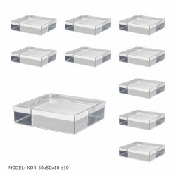 Transparentne kostki z plexi o wymiarach 50 × 50 × 10 mm to uniwersalne i eleganckie ekspozytory do prezentacji biżuterii oraz drobnych przedmiotów. Wykonane z wysokiej jakości, krystalicznie przezroczystej plexi, zapewniają doskonałą widoczność eksponowanych produktów, a ostre, precyzyjnie cięte krawędzie nadają im nowoczesny i profesjonalny wygląd.