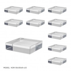 Transparentne kostki z plexi o wymiarach 50 × 50 × 8 mm to uniwersalne i eleganckie ekspozytory do prezentacji biżuterii oraz drobnych przedmiotów. Wykonane z wysokiej jakości, krystalicznie przezroczystej plexi, zapewniają doskonałą widoczność eksponowanych produktów, a ostre, precyzyjnie cięte krawędzie nadają im nowoczesny i profesjonalny wygląd.
