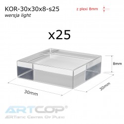 Transparentne kostki z plexi o wymiarach 30 × 30 × 8 mm to uniwersalne i eleganckie ekspozytory do prezentacji biżuterii oraz drobnych przedmiotów. Wykonane z wysokiej jakości, krystalicznie przezroczystej plexi, zapewniają doskonałą widoczność eksponowanych produktów, a ostre, precyzyjnie cięte krawędzie nadają im nowoczesny i profesjonalny wygląd.