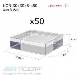 Transparentne kostki z plexi o wymiarach 30 × 30 × 8 mm to uniwersalne i eleganckie ekspozytory do prezentacji biżuterii oraz drobnych przedmiotów. Wykonane z wysokiej jakości, krystalicznie przezroczystej plexi, zapewniają doskonałą widoczność eksponowanych produktów, a ostre, precyzyjnie cięte krawędzie nadają im nowoczesny i profesjonalny wygląd.