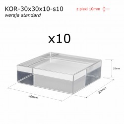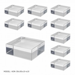 Transparentne kostki z plexi o wymiarach 30 × 30 × 12 mm to uniwersalne i eleganckie ekspozytory do prezentacji biżuterii oraz drobnych przedmiotów. Wykonane z wysokiej jakości, krystalicznie przezroczystej plexi, zapewniają doskonałą widoczność eksponowanych produktów, a ostre, precyzyjnie cięte krawędzie nadają im nowoczesny i profesjonalny wygląd.