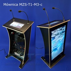 Mównica medialna z wodoodpornej sklejki, Monitor czołowy 32" + prompter dotykowy 22" + mikrofony