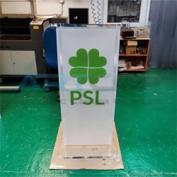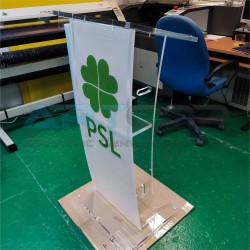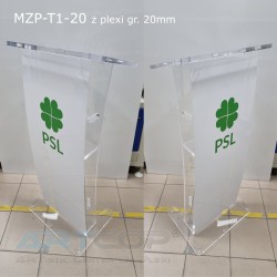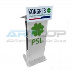 Zmodyfikowana mównica, wykonana z plexi 20 mm sprawia że dzięki swojej wadze jest jeszcze bardziej stabilna. Dodatkowo zamontowane zostały w blacie uchwyty na montaż okazjonalnej tabliczki. Całość gwarantuje podstawę dobrych wystąpień.