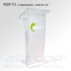Elegancka mównica dla Uniwersytetu Łódzkiego wykonana z najwyższej jakości plexi oraz z nadrukiem UV