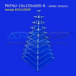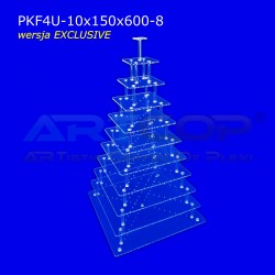 PATERA to elegancki wielopoziomowy stojak ekspozycyjny przypominający swoim wyglądem fontannę klasyczną. Model powstał na drodze modernizacji "Stojaka Fontanna" o przekładkach. Skręcony stojak można przenosić z miejsca na miejsce, co nie jest możliwe w Fontannach krzyżakowych. Zmiany konstrukcyjne dodatkowo poprawiły wygląd stojaka, stał się on bardziej elegancki. Dlatego polecamy go również butikom do prezentacji ekskluzywnych przedmiotów: biżuterii i galanterii. Dane użytkowe: Stojak wykonany jest z materiału posiadającego atest na kontakt z artykułami spożywczymi. Atest można pobrać w zakładce - "Załączniki". Produktu nie można myć w zmywarce.
